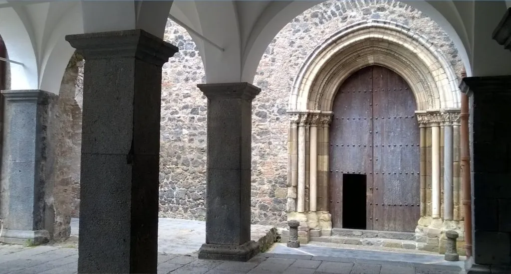 Coeva al Duomo di Monreale, la chiesa di santa Maria di Maniace è un insigne monumento dell’arte romanica del dodicesimo secolo e sembra preludere al bel gotico cistercense per la sobrietà e la purezza dei suoi profili architettonici. L’interno, a pianta longitudinale, si dispiega su tre navate e si interrompe, quasi bruscamente, nella piatta parete di fondo all’altezza dell’arco trionfale, di cui rimangono tracce, oltre il quale sorgevano, originariamente, il transetto e le absidi orientate a levante, entrambi distrutti dal terremoto del 13 gennaio 1693.